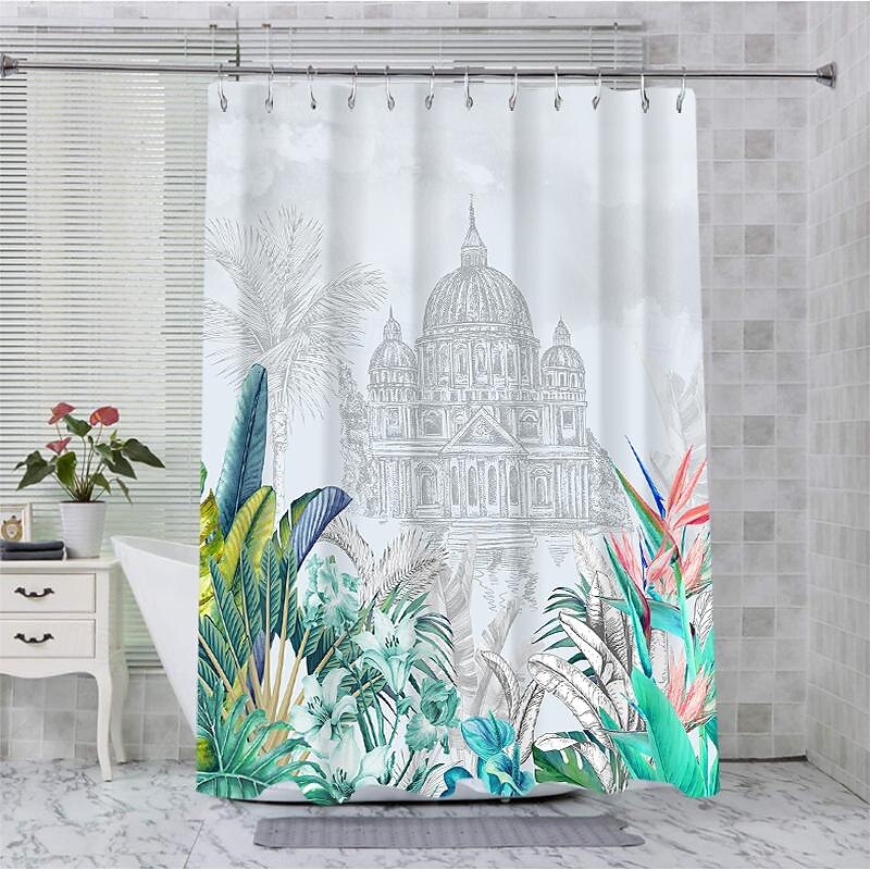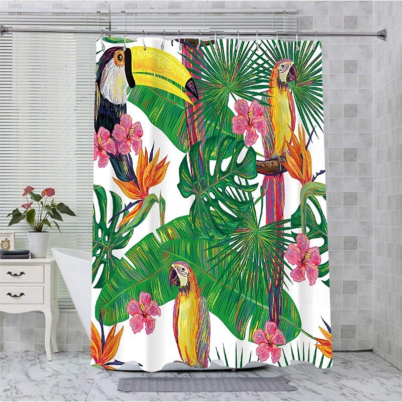 HOT ! Shower Curtain with Hooks 180cm*180cm(70"*70") Polyester Washable Waterproof Tropical Plant Bird Pattern Bathroom Bathtub Decor
