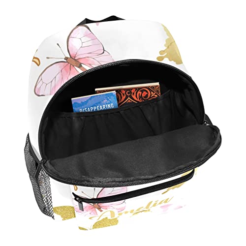 Pink Gold Butterfly Personalized Kids Toddler Backpack for Boys Girls, Custom Mini School Backpack Bags Kindergarten, 10 inches (L) x 4 inches (W) x 12 inches (H) 1