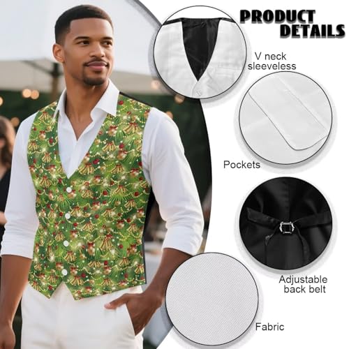 Christmas Vest Big and Tall Button Sleeveless Suit Vest Waistcoat with Pocket 5