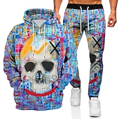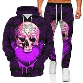 More information about Men's Tracksuit Hoodies Set Blue Purple Gray Black Hooded Graphic Skull 2 Piece Print Sports & Outdoor Casual Sports 3D Print Basic Streetwear Sportswear Fall Spring Clothing Apparel Hoodies