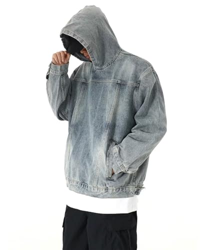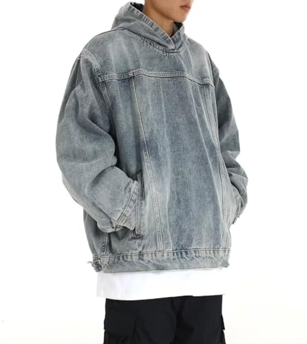 More information about chouyatou Men's Casual Pullover Denim Jacket Vintage Distressed Jean Hoodie Jacket Oversized Sweatshirt Tops