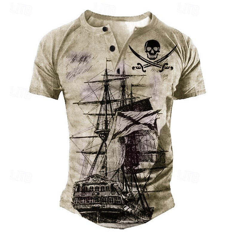 More information about Men's T shirt Tee Henley Shirt Tee Graphic Skull Henley Yellow Blue Green Dark Gray 3D Print Sailboat Plus Size Outdoor Daily Patchwork Button-Down Clothing Apparel Designer Stylish Vintage Basic