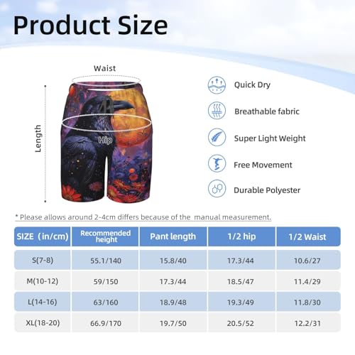 Boys Swim Trunks Beach Board Shorts Summer Bathing Suits Teen Kids, Raven Moon Flowers 5