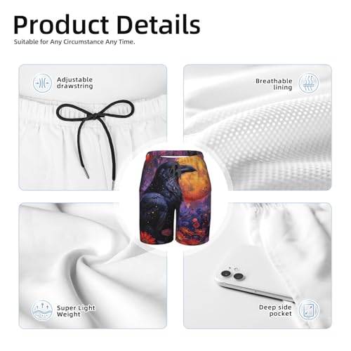 Boys Swim Trunks Beach Board Shorts Summer Bathing Suits Teen Kids, Raven Moon Flowers 3