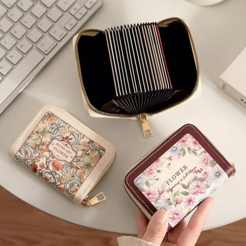 ID Card Case Floral Creative PU Women Wallet Portable Multipurpose Card(Beige-9 Slots) 1