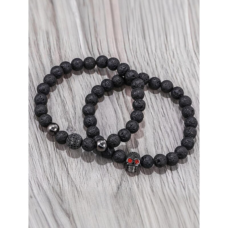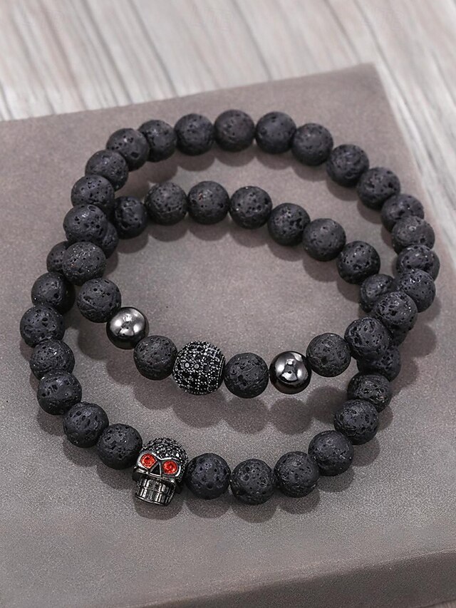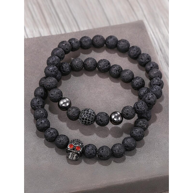 $11.99 - Men's Halloween Skull Beaded Bracelet Set — Natural Lava Stone & Hematite, 2-Piece Stretch Stack with Red-Eye Skull Charm, Gothic Punk for Costume Parties, Cosplay & Daily Wear 2025. Shop for cheap Halloween Accessories online? Buy at lightinthebox.com on sale today!