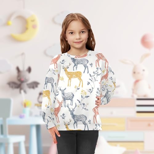JUNZAN Aesthetic Deer White Kids Girls Hooded Sweatshirt Long Sleeve Fall Tops Shirts Athletic 4T 5