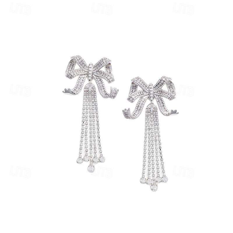 More information about Women's Stud Earrings Geometrical Precious Bowknot Vintage Fashion Dangling Imitation Diamond Earrings Jewelry Silver For Wedding Party Holiday Prom 1 Pair