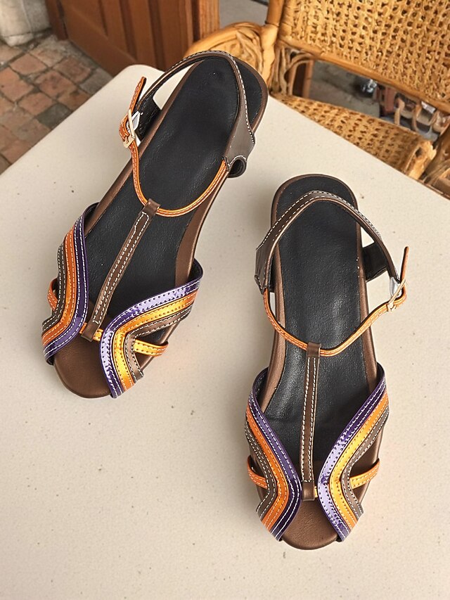 More information about Women's Colorblock T-Strap Flat Sandals – 1950s Inspired Retro Style Shoes for Summer Casual, Travel & Daily Wear