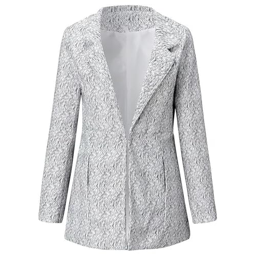 Datebacko Women's Solid Color Pocket Long Sleeve Open Front Coat, 45° Twill Weave Stand Collar With Notch Design 7