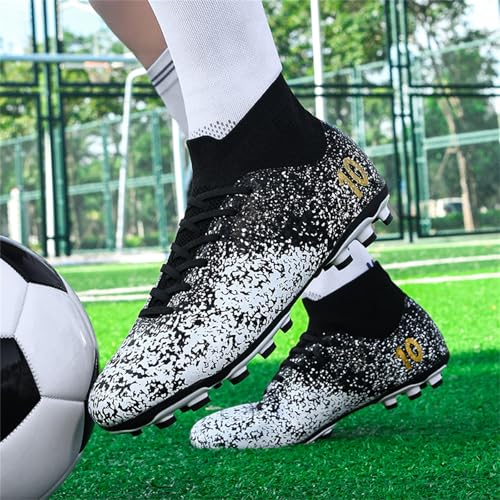 Men's Fashion Lace Up High Top Cleats Spike Soccer Football Shoes Non-Slip Breathable Outdoor Firmly Ground Athletic Baseball Lacrosse Rugby Combat Boots 6