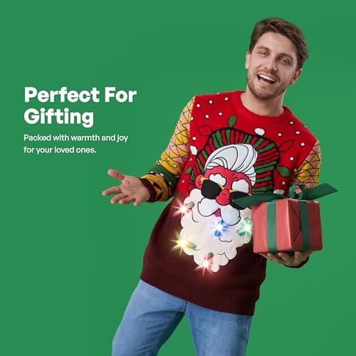 JOYIN Men's LED Light Up Christmas Ugly Sweater, Holiday Ugly Christmas Sweater with Built-in Light Bulbs 1