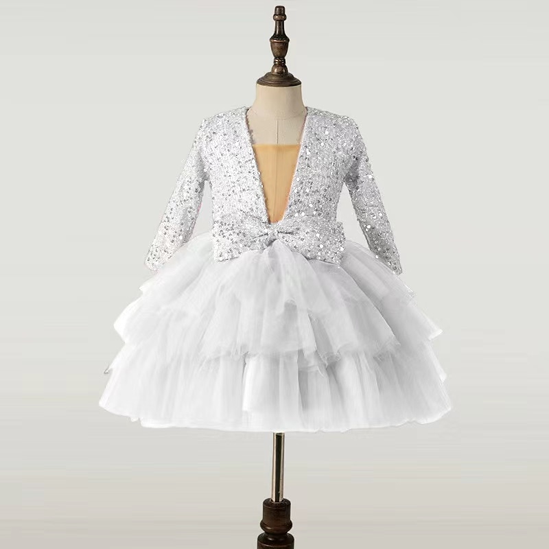 More information about Kids Girls' Party Dress Sequin Long Sleeve Performance Wedding Anniversary Adorable Princess Cotton Above Knee Party Dress A Line Dress Flower Girl's Dress Fall Winter 2-12 Years Black White Pink