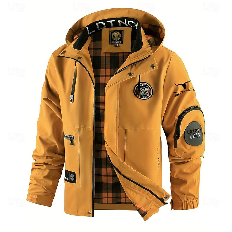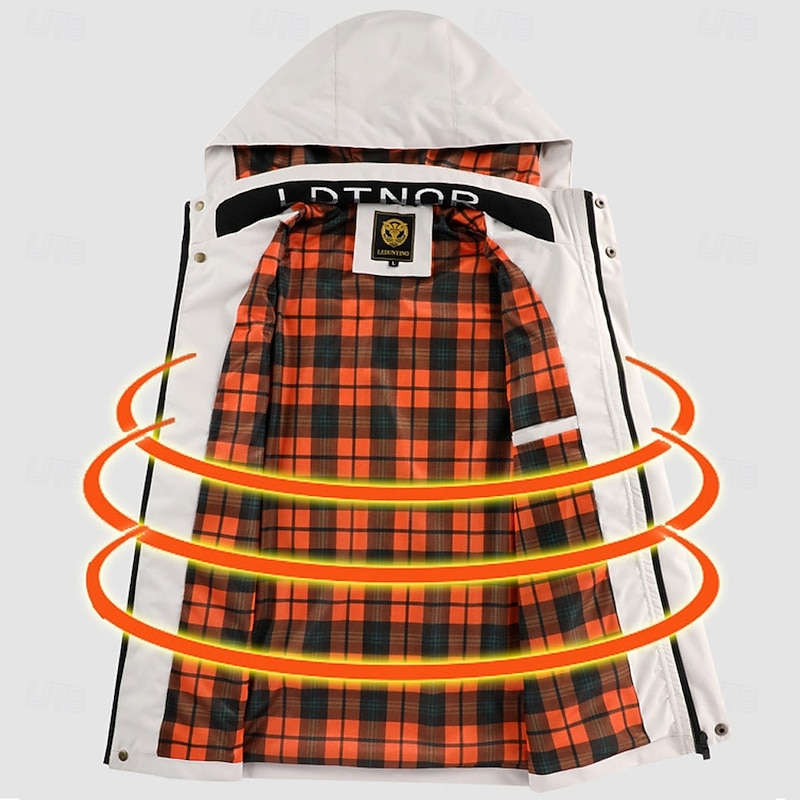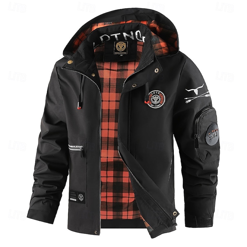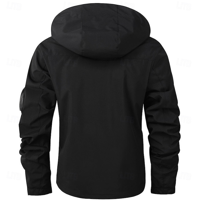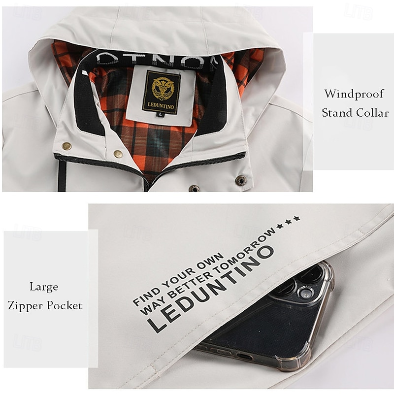 More information about Men's Cow Print Windbreaker Hooded Jacket Parka Waterproof Windproof Multi-Pockets Casual Outdoor Camping & Hiking Detachable Hood Full Zip Coat Outerwear Fall Winter Stand Collar Long Sleeve Black