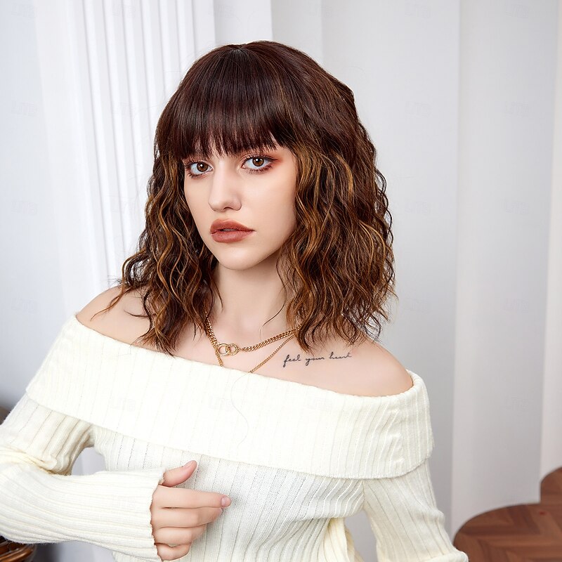 $27.99 - Cosplay Costume Wig Curly Bouncy Curl Bob Neat Bang With Bangs Wig 14 inch Black / Brown Synthetic Hair Women's Elastic Adorable Comfortable Black 2025. Shop for cheap Synthetic Trendy Wigs online? Buy at lightinthebox.com on sale today!