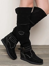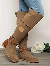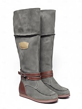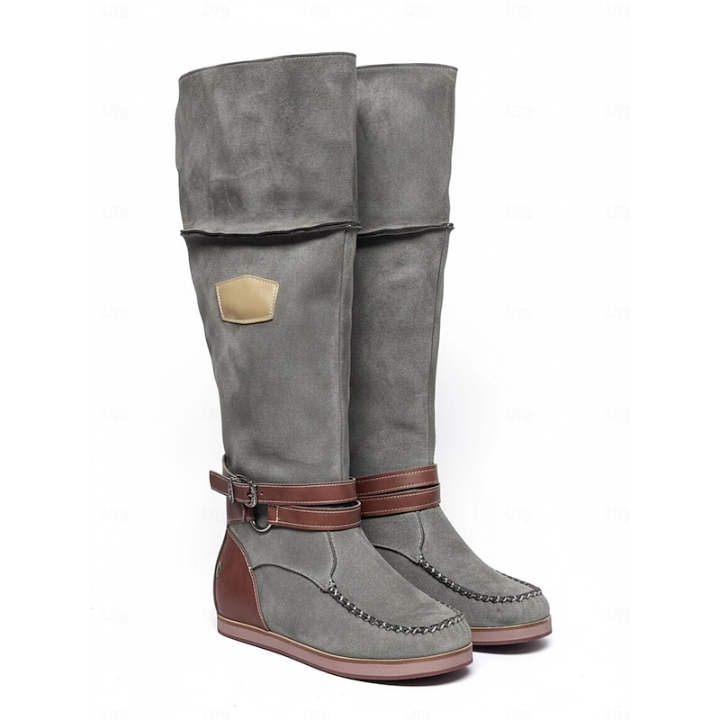 More information about Women's Suede Knee-High Boots with Wedge Heel and Buckle Strap - Bohemian Style Casual Boots in Denim Blue