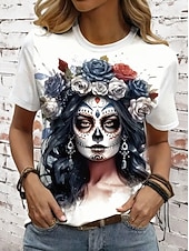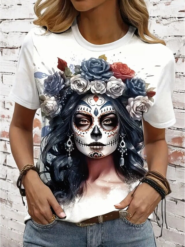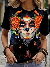 More information about Halloween Women's T Shirt Skulls Skeleton Casual Short Sleeve Round Neck Regular Tops Daily Going out Weekend Print Black White Summer