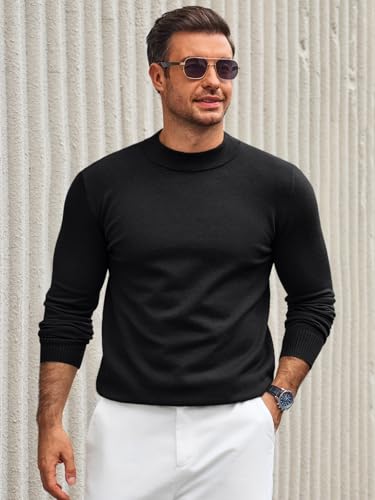 Runcati Mens Mock Turtleneck Pullover Slim Fit Casual Basic Thermal Knit Sweater Lightweight Long Sleeve Pullover Tee 1