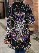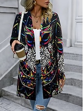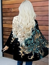More information about Women's Winter Coat Trench Coat Lightweight Comfortable Print Open Front Vintage Fashion Casual Floral Vacation Casual Long Collarless Loose Fit Long Sleeve Outerwear Black Green Spring Fall