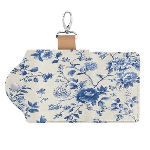Blue And White Floral Motifs Key Holder Bag PU Leather ID Card Holder Keychains Case Cover for Men Women 5
