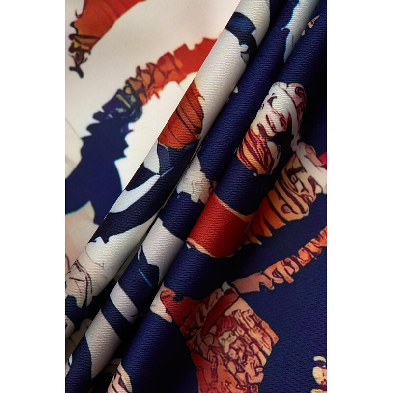 : The vibrant bohemian print is adorned with intricate floral motifs and swirling patterns in eye-catching shades of orange, blue, and beige. Featuring a chic V-neckline and a stylish split design, this dress captures an artistic and trendy look. The short sleeves add a casual touch, ideal for warm weather.