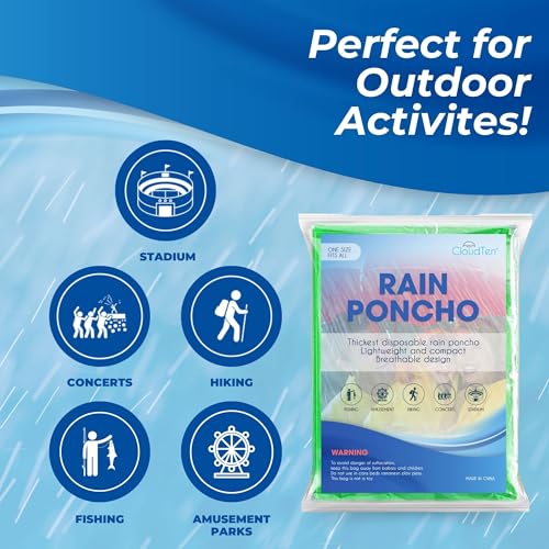 HOT ! CloudTen Compact and Disposable Rain Ponchos for Adults (Green (10 Packs))