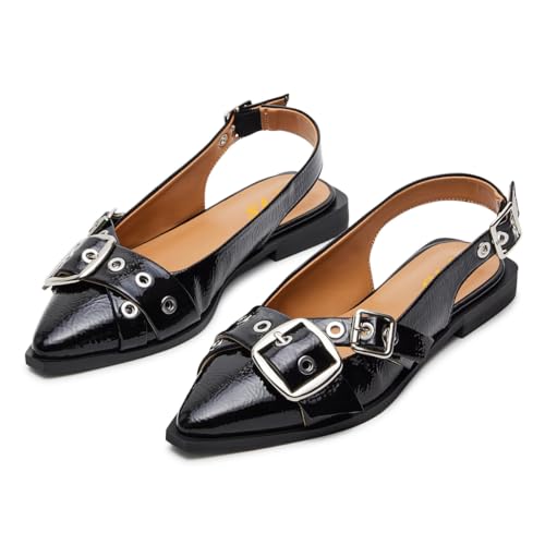 FYS Women's Closed Pointed Toe Slingback Flats Adjustable Buckle Strap Pumps Party Dressy Dating Fashion Shoes Size 4-16 US