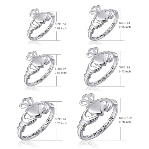 S925 Sterling Silver Love Loyalty Friendship Irish Ladies Claddagh Ring for Women 5