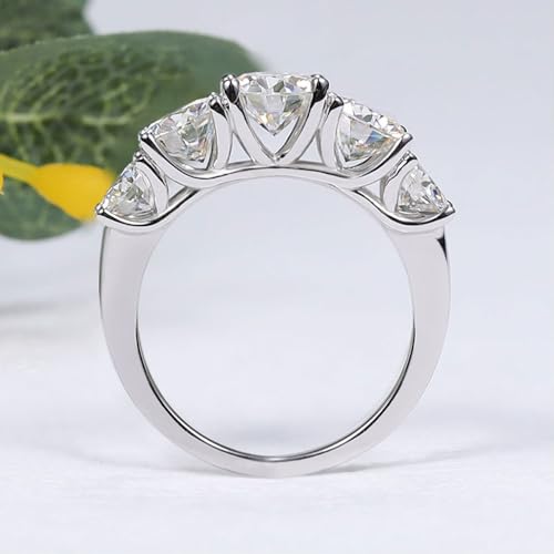 5 stone Moissanite Rings for Women, 3.6ct D Color VVS1 Lab Grown Diamond Ring, s925 Sterling Silver Plated 18k White Gold 5 Stone Moissanite Wedding Band for Women 6