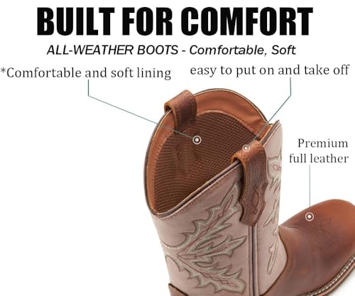 • [Comfort and Non-slip rubber outsole] Designed with your comfort in mind, these cowboy boots come with unique cushioned insoles to provide all-day comfort. The square toe design allows for ample toe room, reducing discomfort even during long hours of wear.Slip resistant rubber lug outsole with tread pattern provides great durability and comfort.