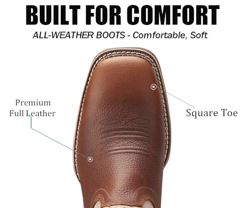 • [EASY TO WEAR] Sureway square toe cowboy boots are designed with two side pull tabs for easy on and off. Even off the job, the square toe western boots have become an iconic footwear choice. Wear them in any weather to keep your feet comfortable all day long. The surface of the boots is made of genuine leather, and the shaft part is made of high-quality artificial leather.