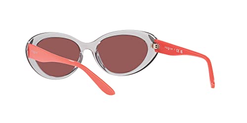 • FRAME FEATURES: VO5456S sunglasses feature an oval, transparent grey frame with metal applique details, and dark violet lenses.