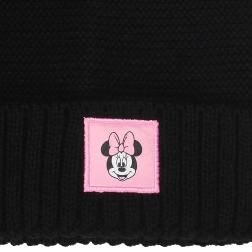 • FUN DETAILS: This beanie hat is topped with two fluffy knit pom-pom mouse ears and a rolled brim for extra flair, while the gloves feature black cuffs a Minnie Mouse applique.
