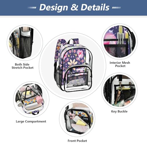 Cute Flower Pattern Clear Backpack - Stadium Approved Large 15.7-inch Waterproof Transparent Bag for Sports, Concerts, Work, Travel#222 7