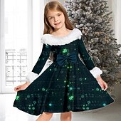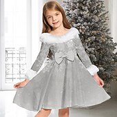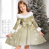 More information about Kids Girls' Dress Gradient Snowflake Long Sleeve Casual Fur Trim Crewneck Adorable Daily Polyester Above Knee Casual Dress Swing Dress A Line Dress Fall Winter 2-13 Years Black Wine Gold