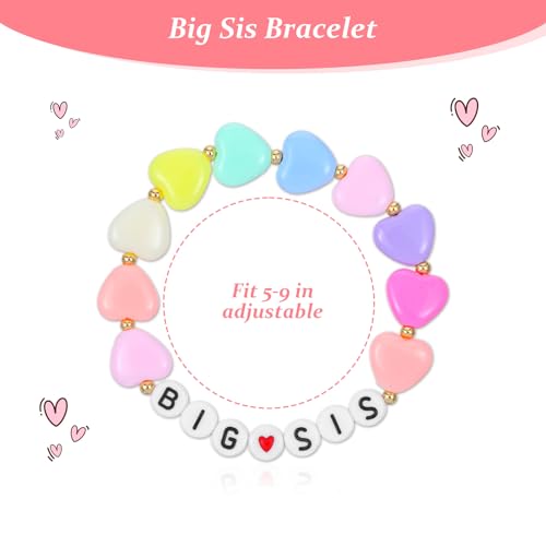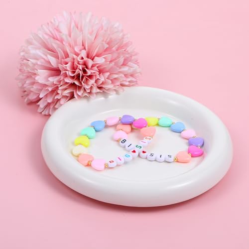 Big Sis Bracelet Sister Announcement Acrylic Initial Beaded 2 Pcs Colorful Bracelets with Heart Charm Birthday Christmas Halloween New Year Gift Letter Beads Bracelet for Sister Jewelry 7