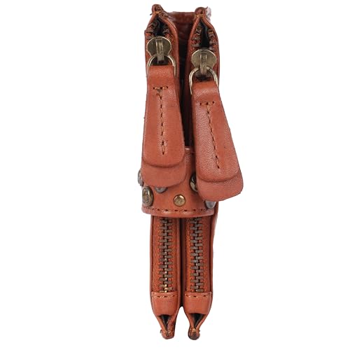 4.75 Inch Genuine Italian Leather Boho Studded Bifold Wallet – Zipper Coin Purse & Credit Card Holder for Women (Cognac) 1