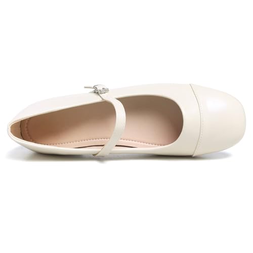 LUXINYU Women Mary Jane Flats Comfortable Leather Shoes Adjustable Buckle Straps Low Heel Round Toe Ballet Flats Work Casual Shoes 6