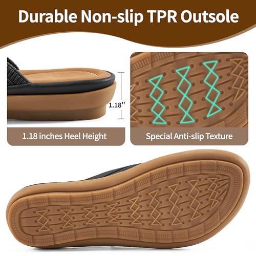 • Anti-Slip TPR Outsole: The sole of these womens flip flops for outdoors features a unique anti-slip texture, offering excellent slip resistance and durability for enhanced safety.