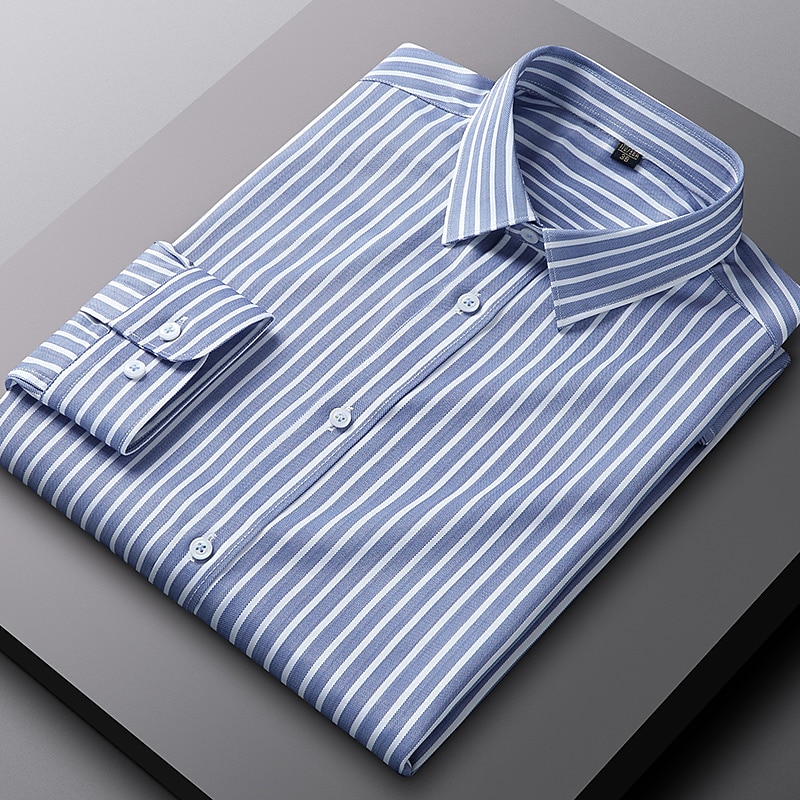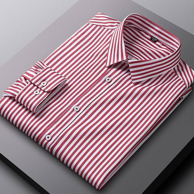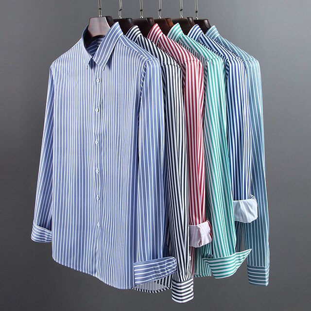 HOT ! Men's Dress Shirt Non Iron Shirt Stripe Wedding Vacation Black Light Green Red Royal Blue Long Sleeve Turndown All Seasons Clothing Apparel Button-Down
