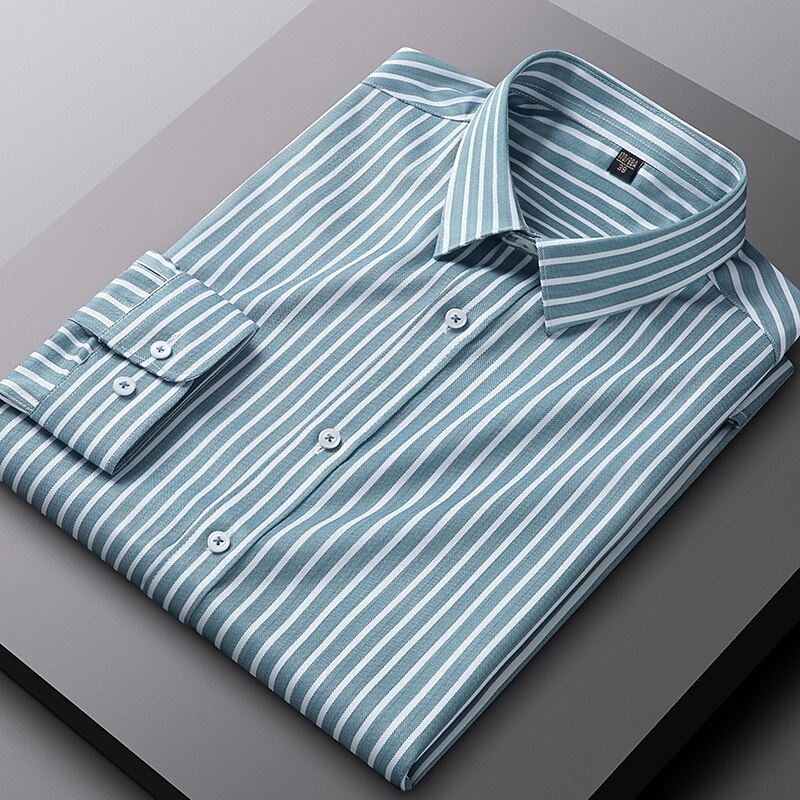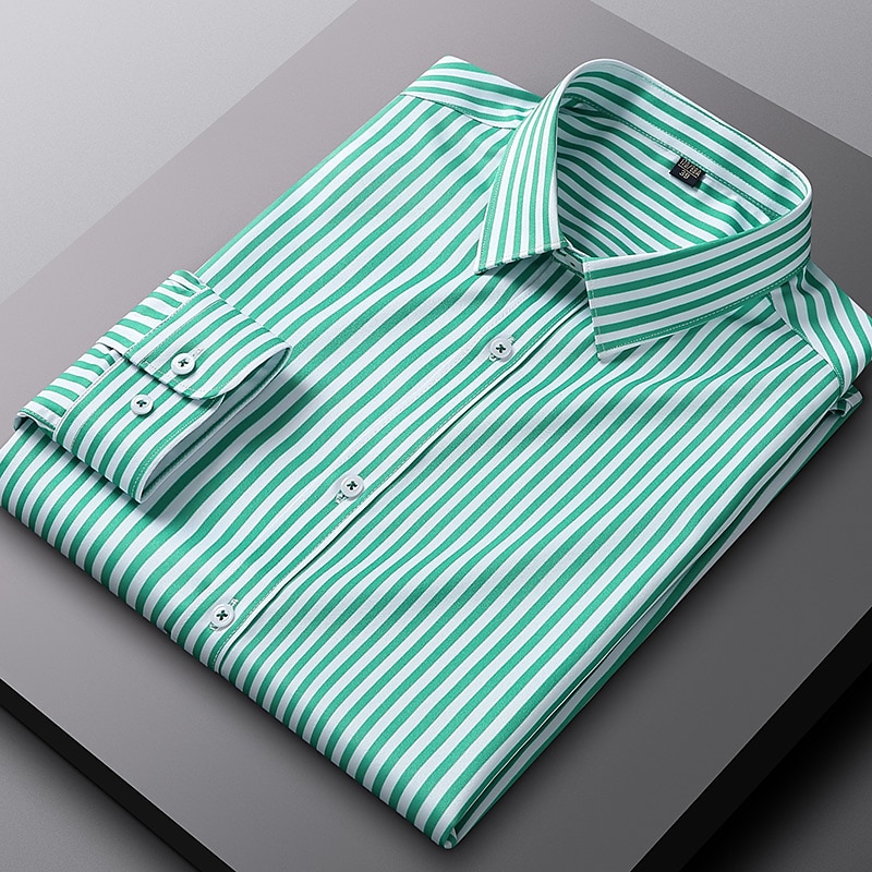 Men's Dress Shirt Non Iron Shirt Stripe Wedding Vacation Black Light Green Red Royal Blue Long Sleeve Turndown All Seasons Clothing Apparel Button-Down 17