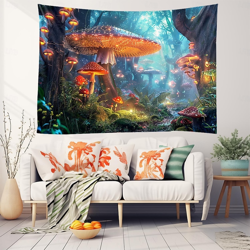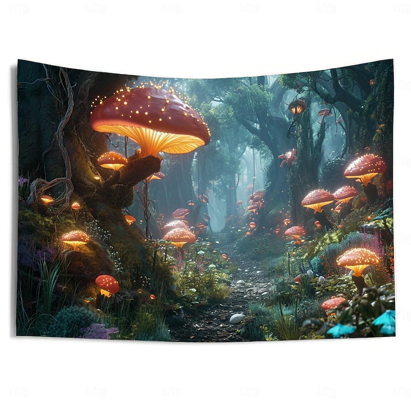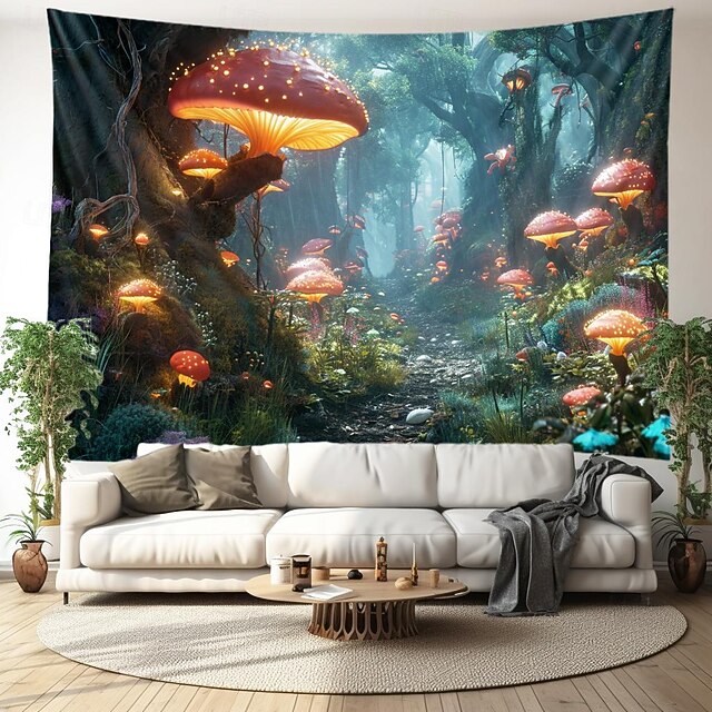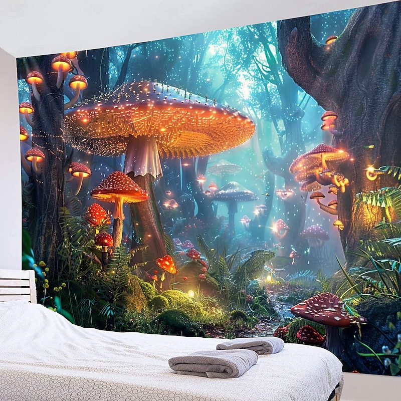 HOT ! Trippy Forest Mushrooms Hanging Tapestry Wall Art Large Tapestry Mural Decor Photograph Backdrop Blanket Curtain Home Bedroom Living Room Decoration