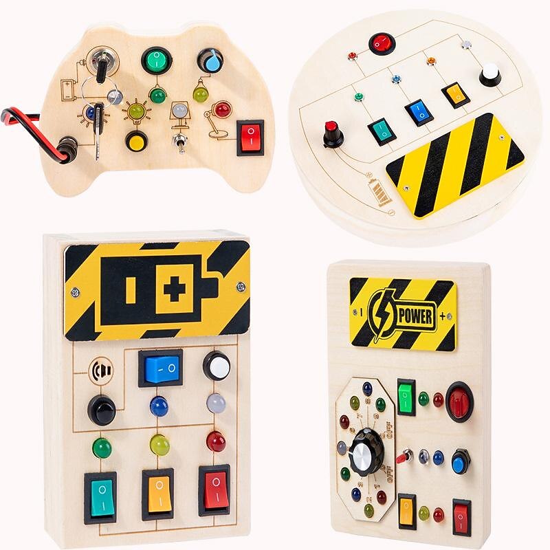 Montessori Light Switch Wooden Sensory Busy Board Pluggable Cords And Keys Educational Learning Decompression Toy Go to School Holiday Gifts for Kids 4