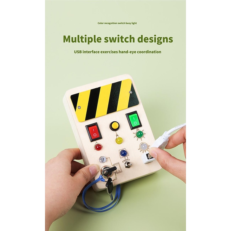 Montessori Light Switch Wooden Sensory Busy Board Pluggable Cords And Keys Educational Learning Decompression Toy Go to School Holiday Gifts for Kids 7
