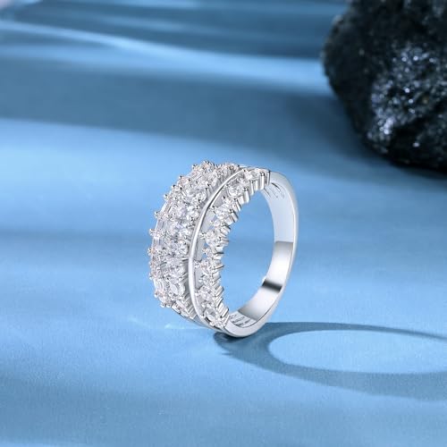 MDFUN 18K White Gold Plated Three-row Cubic Zirconia Engagement Rings Wedding Bands Round Cut Oval Emerald Cut CZ Promise Ring Eternity Band for Women Size 5-10 6