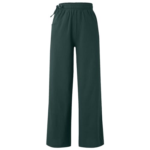 HOT ! Wide Leg Linen Pants for Women Summer Drawstring Beach Pants Loose Lounge Palazzo Trouser Beach Trousers Outfits