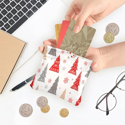 Red Christmas Trees Coin Purse Leather Pouch Change Purse, Squeeze Coin Pouch for Cards, Keys & Lipsticks, Unisex 7