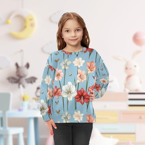 JUNZAN Retro Amaryllis Blue Little Kids Hooded Sweatshirt Long Sleeve Kids Hoodies Boys Camping 4T 4