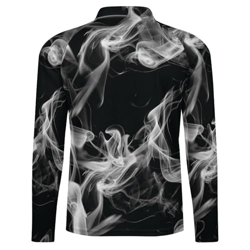 Beautiful White Smoke in The Black Men's Rash Guard Long Sleeves Quick Dry Fishing Workout Shirts with Zipper 4