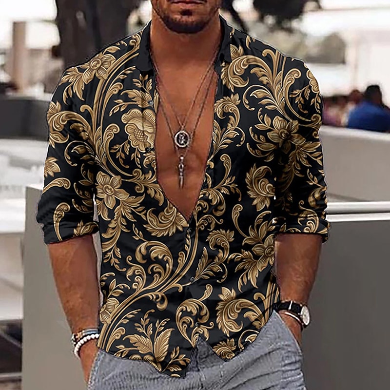 More information about Men's Floral Chains Print Shirt Button Up Shirt Long Sleeve Fashion Designer Casual Outdoor Vacation Daily Fall Collar 3D Print Button-Down Yellow Blue Gold Green